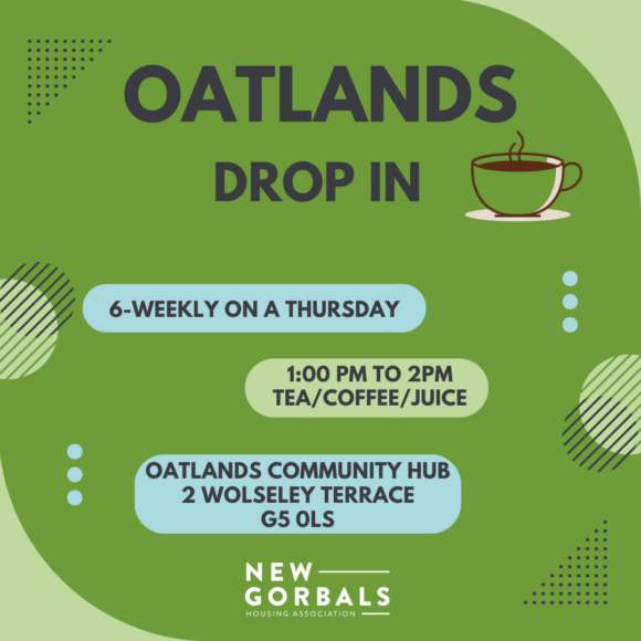 If you live in Oatlands – or anywhere else in the Gorbals, you are welcome to pop in for a tea or juice and a chat.  Every 6-weeks on a Thursday at 1pm in Oatlands Community Hub.