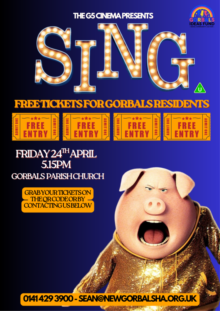 Sing – Live at the G5 Cinema – Friday 24th April at 5.15pm (Gorbals Parish Church)